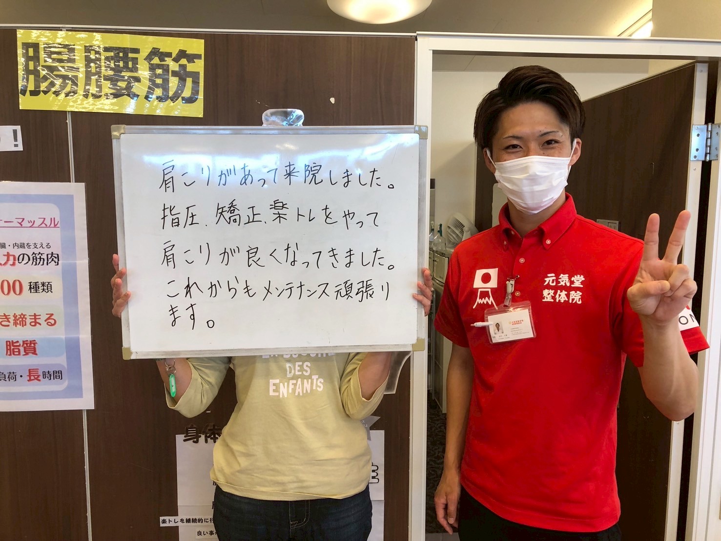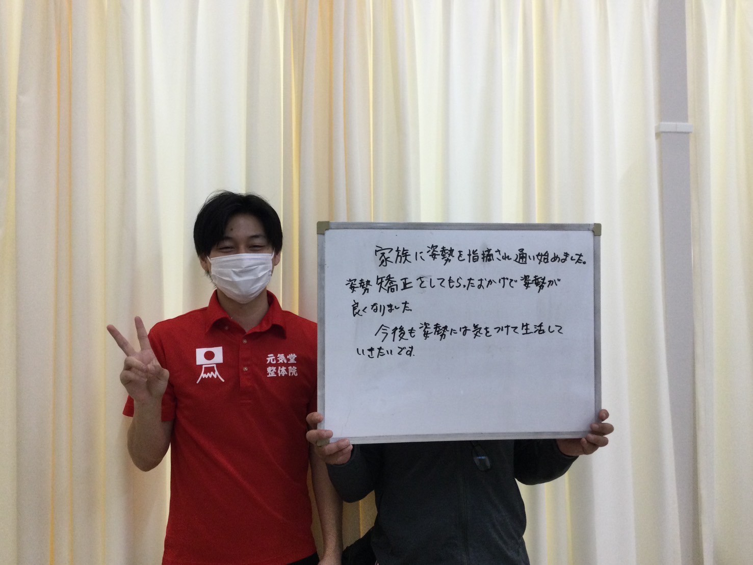 「最初は肩こりで行ったけど、写真を見せてもらったら見事に猫背でした(笑)施術後は背筋がスッと伸びて、姿勢が良くなったって娘にも言われました!」